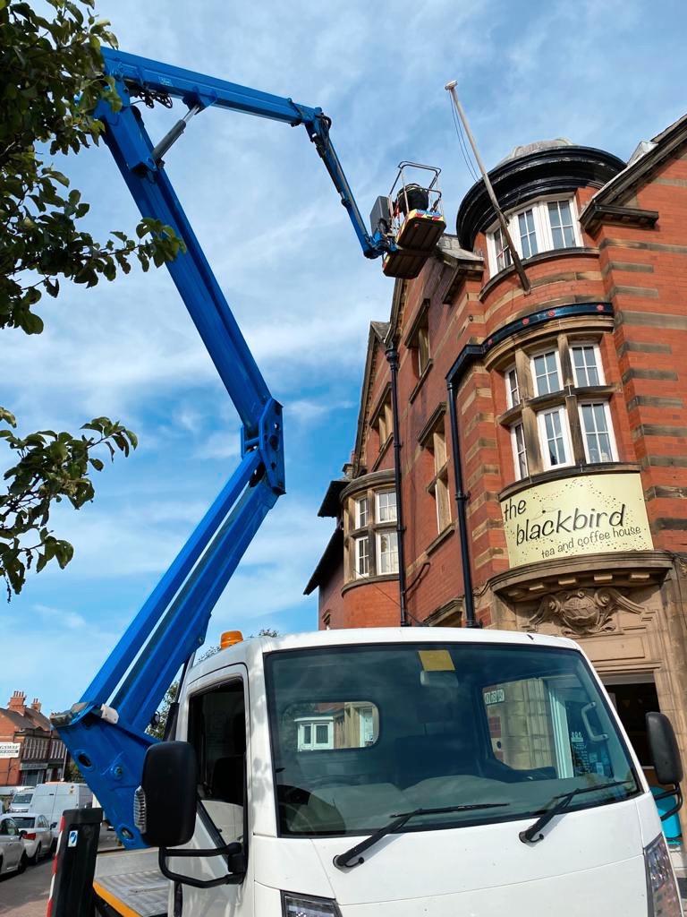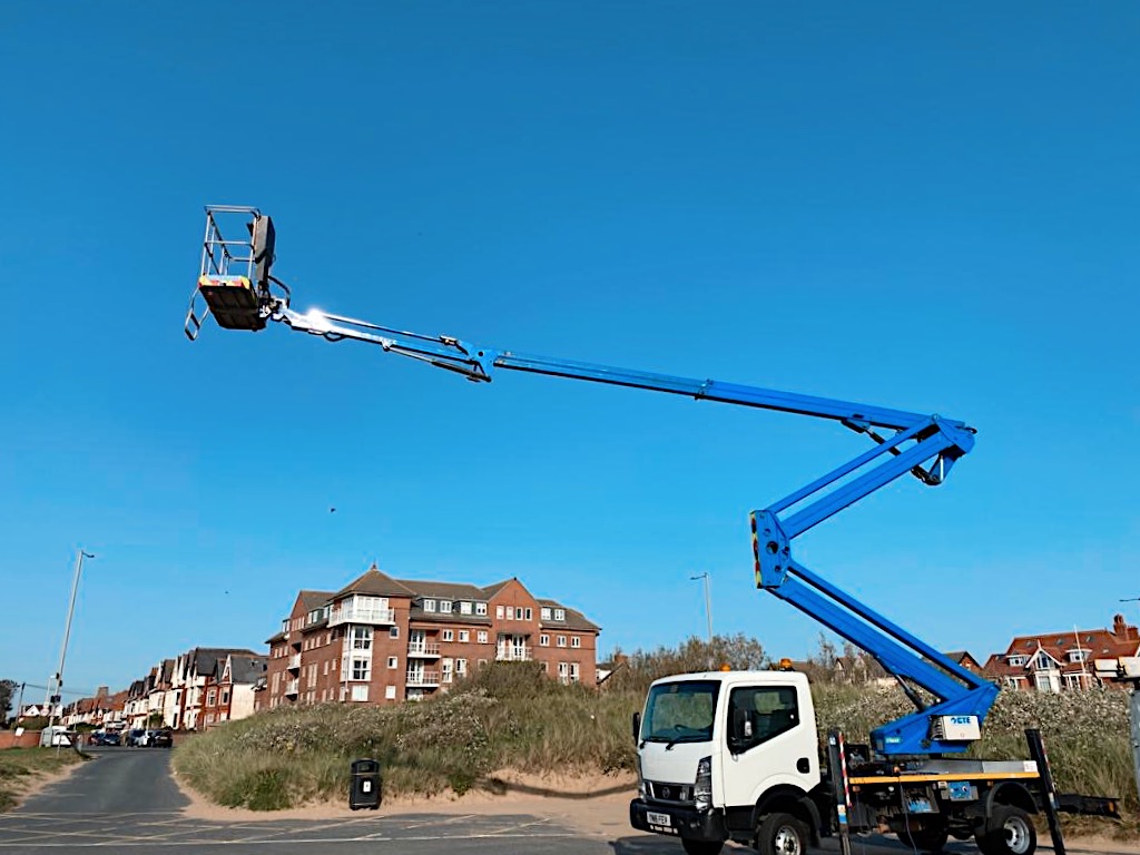 Fully Operated truck mounted cherry picker hire in Lancashire. Powered access platforms and Scissor Lifts operated by an IPAF qualified operator.
